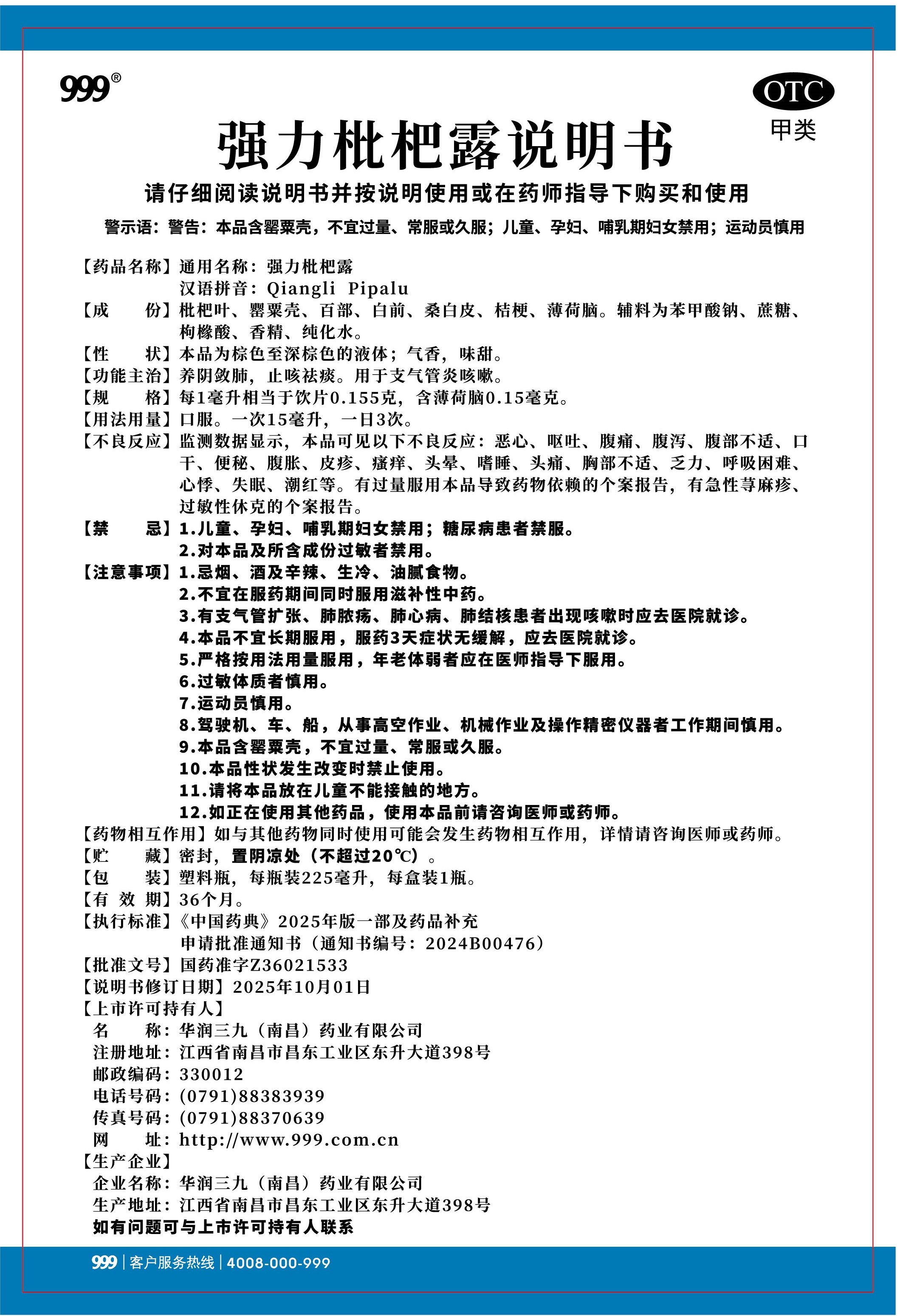 強(qiáng)力枇杷露-南昌三九(150毫升瓶裝)