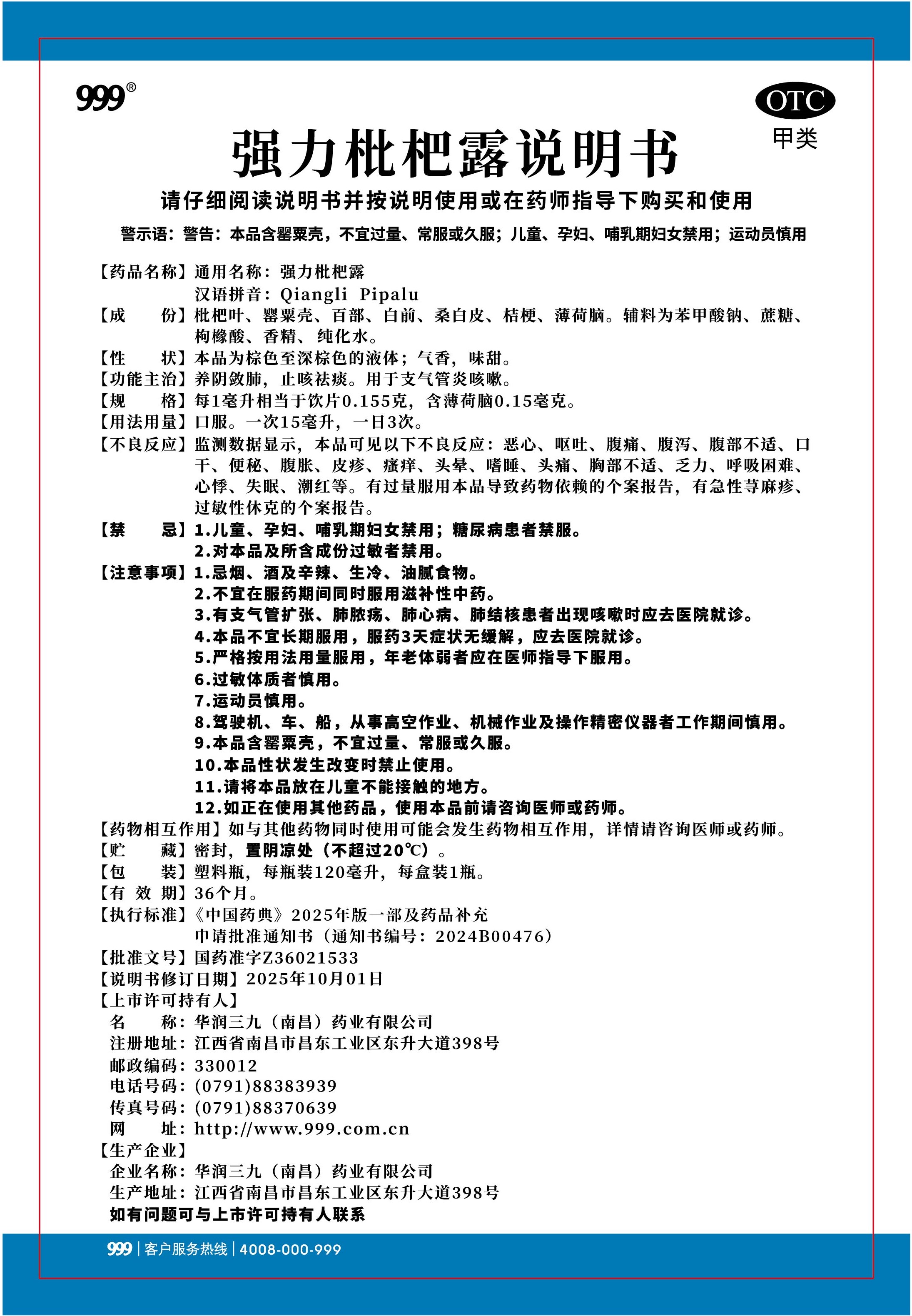 強(qiáng)力枇杷露-南昌三九(120毫升瓶裝)