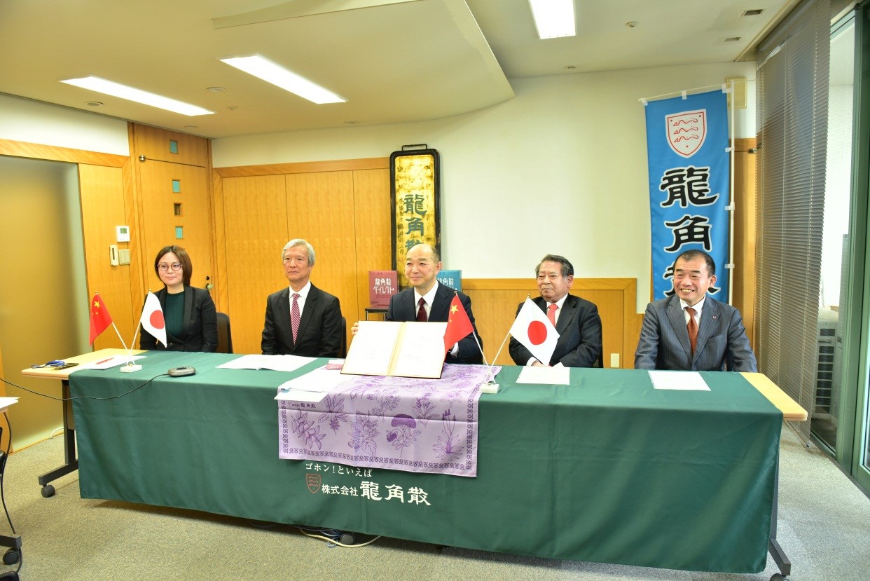 日本株式會(huì)社龍角散社長(zhǎng)藤井隆太、安全管理部長(zhǎng)新田信一、業(yè)務(wù)推進(jìn)本部長(zhǎng)坪井正樹(shù)、営業(yè)本部國(guó)際課長(zhǎng)伊藤和人、営業(yè)本部國(guó)際課課員袁嘉以及華潤(rùn)三九總裁邱華偉、副總裁周輝、OTC事業(yè)部兼大健康事業(yè)部副總經(jīng)理喻翔、投資發(fā)展部副總經(jīng)理白潔明、數(shù)字化中心助理總經(jīng)理兼市場(chǎng)部品類(lèi)總監(jiān)王皓蔚等出席簽約儀式。(華潤(rùn)三九)