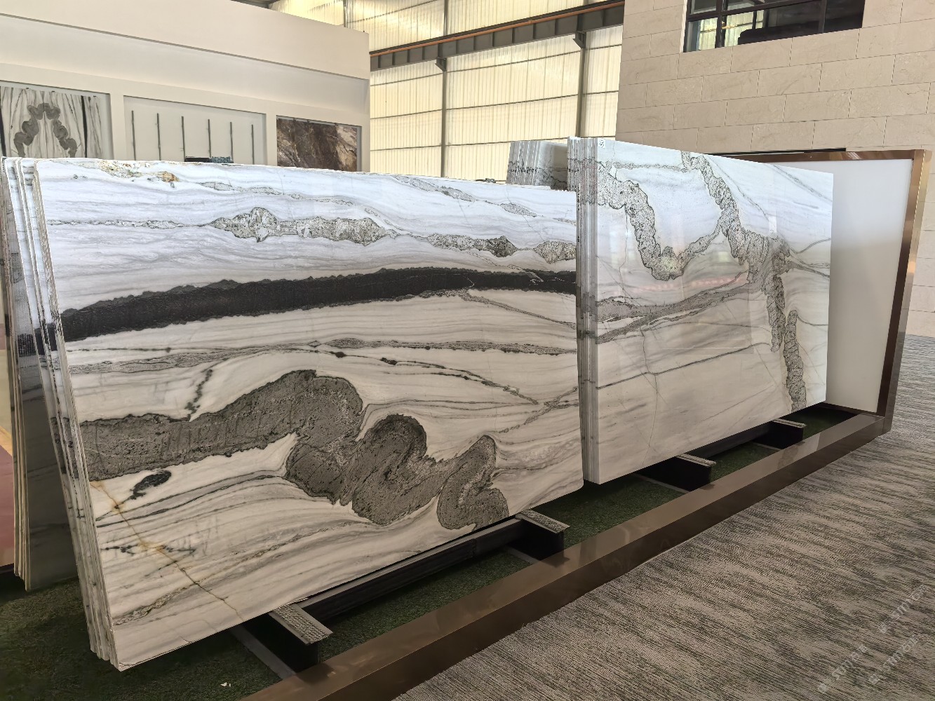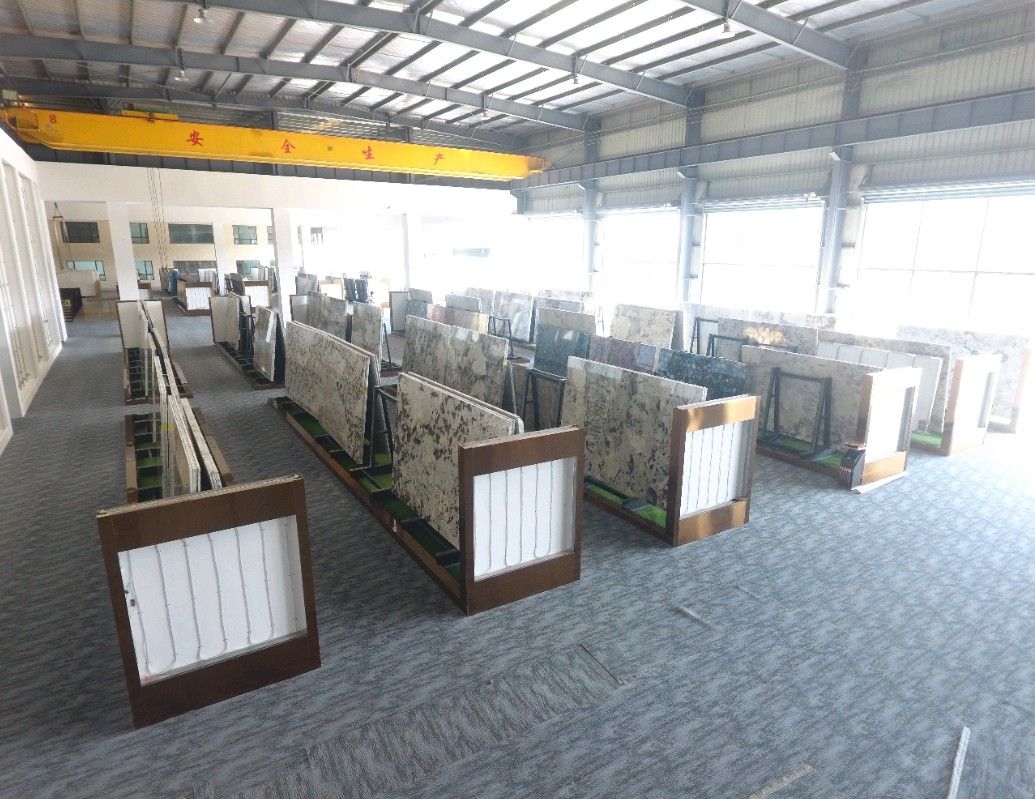 公司廠房現(xiàn)占地30,000平方米,員工150人,引進了先進的加工生產設備,3臺現(xiàn)代全自動化超大鉆石拉鋸,2條全自動大板磨拋生產線,BM單片鋸,紅外線切割機,全自動五維數(shù)控繩鋸,磨邊機,仿形機和水刀拼花等,形成規(guī)?;纳a大板及加工各類異型的綜合石材工藝能力,如規(guī)格板、薄板、臺面板、線條、弧板、羅馬杜、壁爐、拼花和馬賽克等。