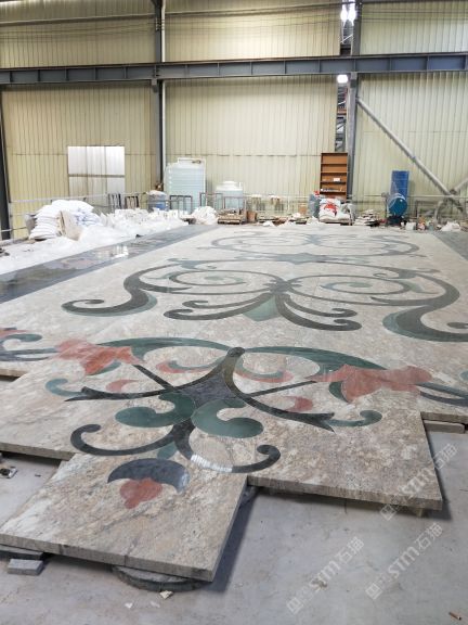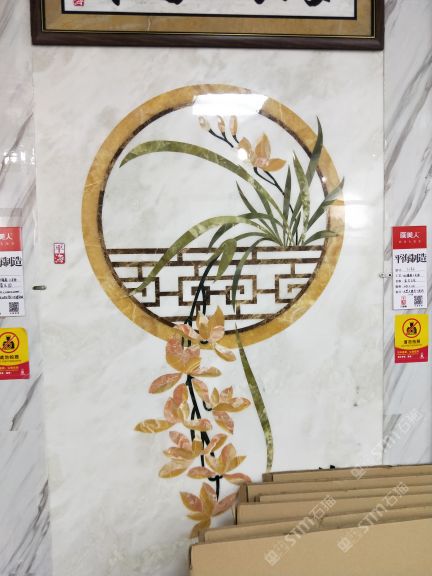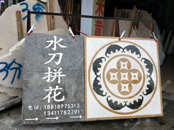 本公司 轉(zhuǎn)營大理石(歐亞木紋,藍冰玉) 水刀拼花 電視背景,特價石材。