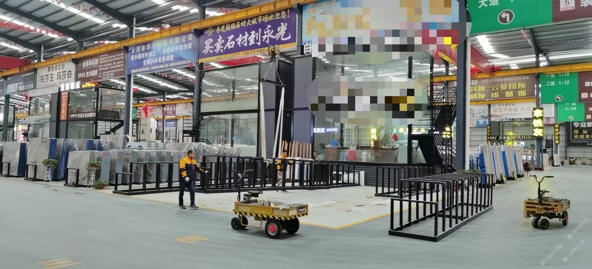 本市場(chǎng)占地面積近三萬(wàn)平方米,建筑整體根據(jù)石材行業(yè)未來(lái)需求專(zhuān)業(yè)設(shè)計(jì),高度18米,柱距9.5米,路寬達(dá)12米,采光通風(fēng)良好。目前進(jìn)駐商戶(hù)接近100戶(hù),集礦山推廣、板材倉(cāng)儲(chǔ)、產(chǎn)品展示、批發(fā)零售的一站式購(gòu)銷(xiāo)平臺(tái)。商戶(hù)產(chǎn)品定位以高端石材為主,包括白石、灰石、米黃、玉石、奢石等上百種產(chǎn)品集聚于此,真正實(shí)現(xiàn)行業(yè)資源共享、商客互動(dòng)、互惠互利的雙贏模式。另外,本市場(chǎng)提供獨(dú)棟辦公樓、餐廳、大型停車(chē)場(chǎng)、專(zhuān)業(yè)吊裝服務(wù)、安保清潔等配套設(shè)施,減少商戶(hù)軟性運(yùn)營(yíng)成本,助您點(diǎn)石成金!