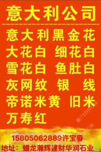 主營:大花白 雪花白 魚肚白 銀線米黃 意大利木紋(帝諾) 意大利灰網文 細花白 舊米黃 意大利黑金花 玉石 新米黃 米蘭灰 萬壽紅