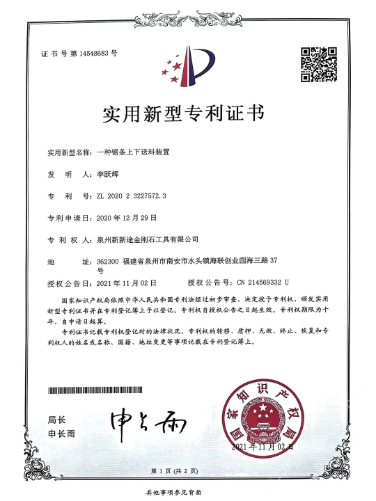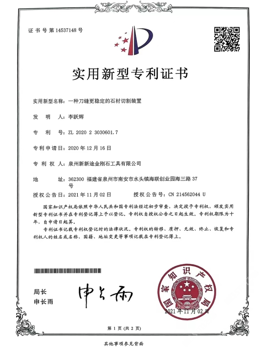 發(fā)布信息: 南安市新途金剛石工具針對目前大理石切割灰料難的現(xiàn) 狀,特別是“愛馬仕灰、瑪雅灰、意大利灰、露娜灰、閃 電灰、灰不灰、羅曼蒂克灰”等帶網(wǎng)格狀花紋、暗裂、孔 洞等切割隱患難加工的荒料,新途工具研發(fā)了一種不掉齒 的排鋸刀頭:“安全切割一切難加工的灰色大理石荒料”。 不單是刀頭鋸條特殊設(shè)計,更是結(jié)合了十多年的切割經(jīng) 驗(yàn),通過對機(jī)臺冷卻水及操作參數(shù)、退刀和出料等操作工 藝的改進(jìn),大大地提高了灰料切割的安全、高效。真正做 到了不倒料或少倒料。 作為長期穩(wěn)定的合作方,誠懇感謝:東升股份/遠(yuǎn)達(dá)石材/ 奧力石業(yè)/泉興隆石業(yè)/翰將石業(yè)/中發(fā)大理石/新容石業(yè)/寶 多龍石業(yè)/銳豐源石業(yè)/漢榮石業(yè)/超億石業(yè)/宗藝石業(yè)/尊龍 石業(yè)/正大石業(yè)/銘裕石業(yè)/正方石業(yè)/尚衡石業(yè)/捷成石業(yè)/振 南石/天正/描側(cè)石/率硬石上/仏期石/流中石上/灣源 石業(yè)/瑜興石業(yè)/豪闊石業(yè)/興業(yè)石業(yè)/萬華石業(yè)/振興石業(yè)/豪 聞石業(yè)/奧都石業(yè)/永光石業(yè)/明晟石業(yè)/加州(安固)石業(yè) 等等優(yōu)質(zhì)供應(yīng)商廠家(排名不分先后) 本公司秉承合作共贏,誠懇敬業(yè)的態(tài)度在石材加工切割領(lǐng) 域深度專研。歡迎廣大群體來領(lǐng)略新途。