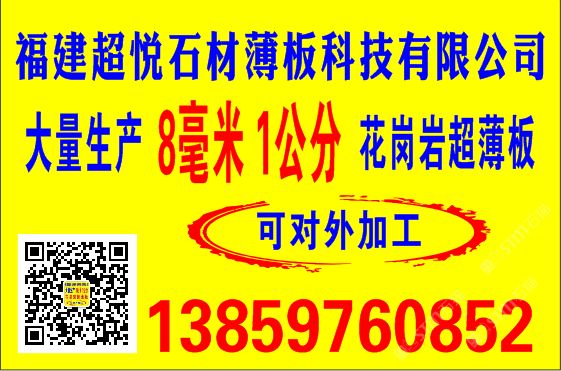 發(fā)布信息: 主營5毫米8毫米1公分花崗巖超薄板和1公分大理石超薄板【福建省超悅石材薄板節(jié)能科技有限公司】