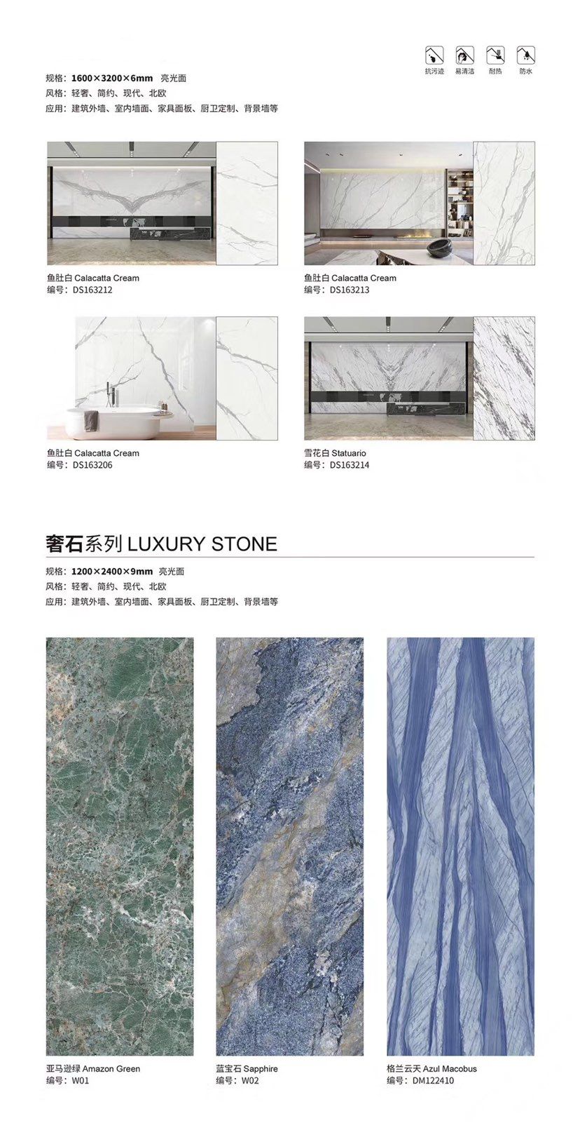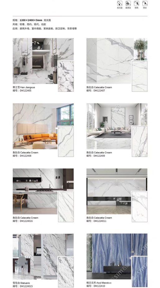 發(fā)布信息: ????SIBELAN 斯貝納巖板???? ????意大利設(shè)計(jì)師精選巖板???? 我們可以幫老總您加工為成品, 全國范圍內(nèi)可安排專業(yè)團(tuán)隊(duì)安裝. 做到您一次性采購 省心. 放心. 省時(shí). 低價(jià)! 巖板紋路版面全多達(dá)199 款 勵志做服務(wù)五星的巖板專業(yè)供應(yīng)商 魚肚白 雪花白 格蘭云天 寒江雪 爵士白 幻影灰 勞倫黑金 火山灰 亞馬遜 艾維拉 羅馬黑檀 貝特巖 細(xì)花白 羅馬灰 云朵拉灰 魚肚金 莎羅娜 莎羅蘭 勞倫白金 拉薩白 中花白 灰冰玉 卡拉拉白 撒金黑 清水玉 薩瓦灰 莎士比亞 大花灰 白冰玉 銀灰洞 阿瑪尼灰 綠紋玉 綠冰玉 藍(lán)紋玉 保加利亞灰 鐵銹 黑木紋 流砂灰 純白 純灰 純黑 TEL: 15905069590 聶 各種版面規(guī)格全部如下: 1200×600×11mm 啞光 1500×800×11mm 啞光 1800×900×11mm 啞光 1800×900×12mm 啞光 2600×800×15mm 啞光 2400×1200×6mm 啞光/亮光 2400×1200×9mm 啞光/亮光 2400×1200×15mm 啞光 2700×1200×6mm 啞光/亮光 2700×1600×12mm 啞光/亮光 3200×1600×6mm 啞光/亮光 3200×1600×12mm 啞光/亮光