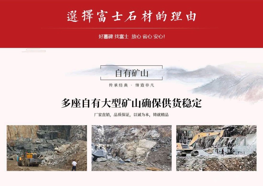 發(fā)布信息: 富士石材位于世界石雕之都——福建惠安,于1996年成立,主營墓碑生產、墓碑研發(fā)設計、公墓運營&殯儀館運營、公墓陵園景觀、規(guī)劃設計等一條龍殯葬服務。公司自成立以來不斷引進當今世界先進的生產設備及加工工藝,用專業(yè)的設備造優(yōu)秀的產品。公司擁有一大批經(jīng)驗豐富的技術型管理人才,以嚴謹?shù)墓芾硖峁└咝У姆眨⑴湟韵冗M的電腦設計及現(xiàn)代化企業(yè)管理模式,秉承 “以客戶為中心、以質量為根本,以市場為導向、以人文為基礎”的經(jīng)營理念,經(jīng)過將近三十年的發(fā)展,逐步發(fā)展成為一家集墓碑加工生產、研發(fā)設計、陵園規(guī)劃設計、公墓運營&殯儀館運營為一體的公司。