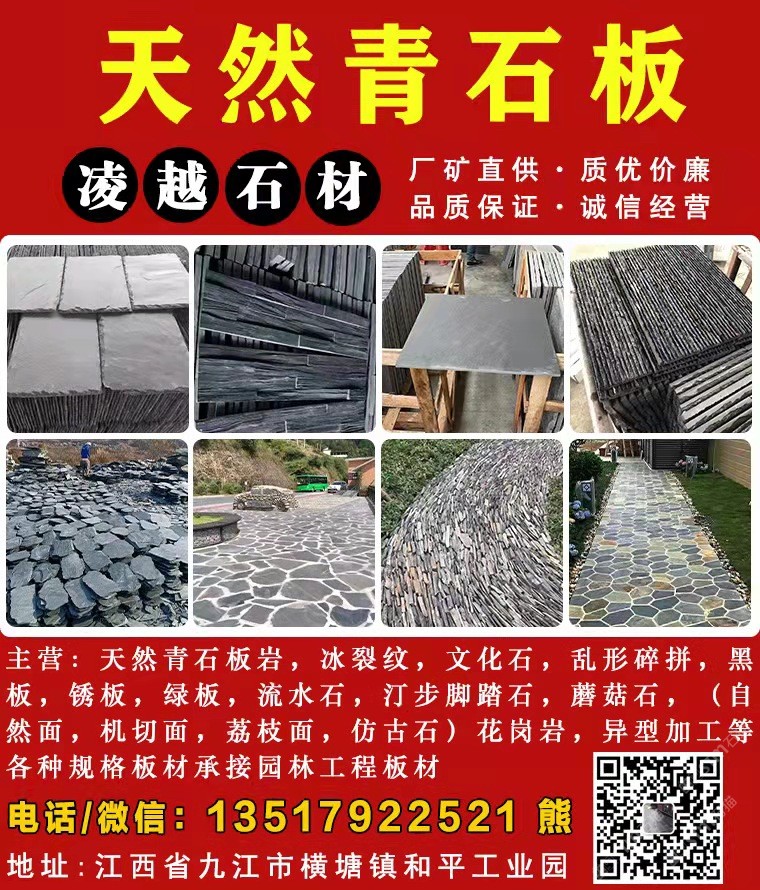 發(fā)布信息: 主營(yíng),冰裂紋,文化石,亂形碎拼,黑板,銹板,綠板,流水石,汀步腳踏石,蘑菇石,(自然面,機(jī)切面,荔枝面,仿古石)花崗巖 異型加工等各種規(guī)格板材承接園林工程板材。歡迎新老客戶的支持。購(gòu)電話13517922521(微信同號(hào))