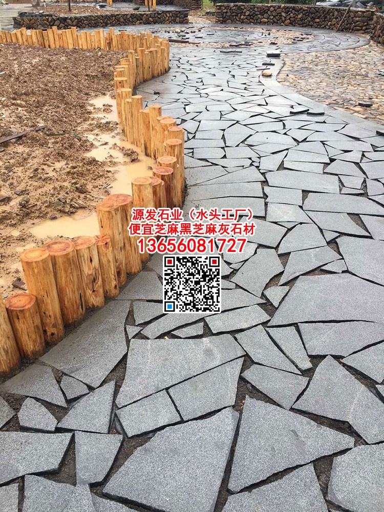 芝麻黑天然冰裂紋地鋪石亂拼碎拼石材G654亂形石
