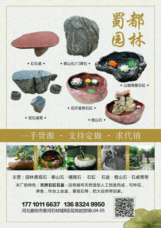發(fā)布信息: 專營:泰山石、景觀石、天然石頭花盆水盆、鋪路石、假山石、石桌石凳等,一手貨源,支持定做,求代銷??!