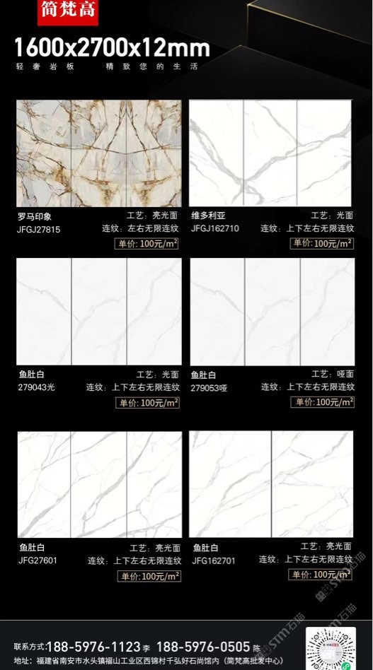 簡梵高巖板(批發(fā)) 聯(lián)系人:陳先生    188****0505 查看 手機號碼:無 主營范圍: 大板批發(fā)、環(huán)境石材、人造石加工、 企業(yè)地址:福建南安水頭鎮(zhèn)福山工業(yè)西錦村千弘好石尚館內(批發(fā)中心)