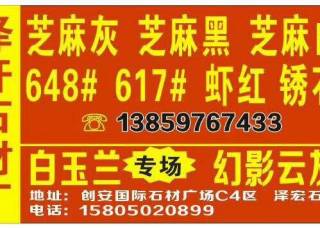 南安市雅柏石業(yè)有限責(zé)任公司主營產(chǎn)品:灰太狼(大花),灰太狼(黑線),灰太狼,灰太狼(小花),灰太狼(中花),黑郁冰花,大白玉蘭,雅柏1號(hào)企業(yè)地址:福建泉州南安市水頭鎮(zhèn)福山工業(yè)區(qū)瑞剛廠內(nèi)
