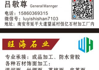 旺海石材加工廠主營(yíng)產(chǎn)品:芝麻黑火燒面(浙江礦),蝦紅(火燒面),青石(火燒面),白麻(火燒面),灰麻(火燒面),越南黑火燒面,咖啡鉆火燒面,墨綠鉆火燒面,山西黑(火燒面),黑金剛火燒面(巴基斯坦),芝麻白(火燒面),黃銹石(火燒面),黃金麻(火燒面),福鼎黑(火燒面),G633火燒面,漳浦銹(火燒面),四川黑(火燒面),G655火燒面(漳州礦),石井銹(火燒面),壽寧紅(火燒面),印度黑(火燒面),藍(lán)寶石(火燒面),梨花白(火燒面),象牙白(火燒面),楓葉紅(火燒面),新蝦紅(火燒面),印度黑(火燒面)大花,金灰麻(火燒面),角美銹(火燒面),粉紅麻(火燒面),寶石棕(火燒面),蝦紅荔枝面,霞紅荔枝面(PC磚),蝦紅荔枝面(PC磚),銹石荔枝面(PC磚),青石(荔枝面),白麻(荔枝面),銹石(荔枝面),青石(荔枝面)1,芝麻灰荔枝面(PC磚),卡麥(荔枝面),白沙(荔枝面),蝦紅(荔枝面),芝麻白荔枝面(PC磚),灰麻(荔枝面),咖啡鉆荔枝面,紅板(荔枝面),芝麻黑荔枝面(浙江礦),芝麻黑荔枝面(PC磚),黃金麻荔枝面(PC磚),洗衣池(花崗巖),臺(tái)面板(大理石),臺(tái)面板(花崗巖),臺(tái)面板(石英石),洗手盆(大理石),洗手盆(玉石),石線(大理石線條),石線(花崗巖線條),水刀拼花(大理石),水刀拼花(花崗巖),背景墻(大理石),洗手臺(tái)(花崗巖)企業(yè)地址:福建南安延平大道望溪村恒億石材加工廠內(nèi)
