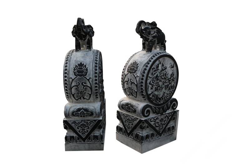 描述:抱鼓石是漢族傳統(tǒng)民居,特別是四合院的大門底部位于宅門入口、形似圓鼓的兩塊人工雕琢的石制構(gòu)件,屬于門枕石的一種,因?yàn)樗幸粋€猶如抱鼓的形態(tài)承托于石座之上,故此得名。抱鼓石是禮制建筑等級的符號象征,也是"非貴即富"的門第符號,抱鼓石絕不脫離它主人背后的政治、經(jīng)濟(jì)基礎(chǔ)而獨(dú)立存在。抱鼓石漢族民間稱謂較多,如:石鼓、門鼓、圓鼓子、石鏍鼓、石鏡等等。抱鼓石與門簪因?yàn)樵谡T門面上下遙相呼應(yīng),在漢族民間有所謂的"門當(dāng)戶對"之說。