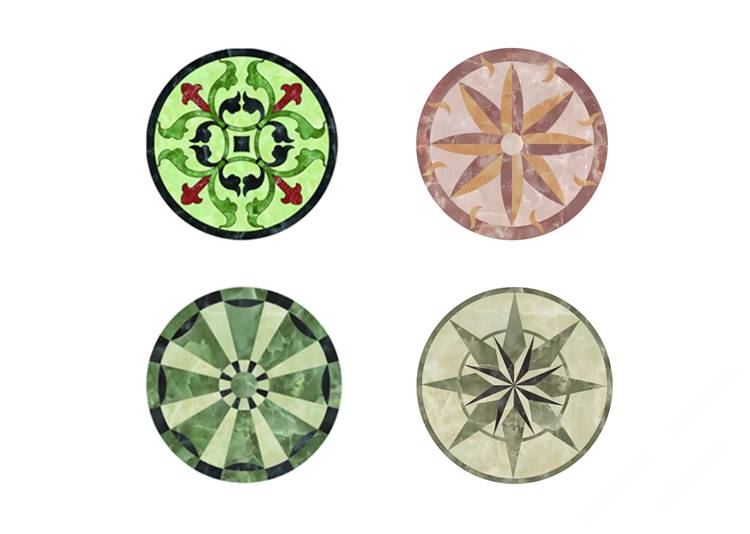 描述:石材水刀拼花是目前市場上最常見的水刀拼花,是利用水刀將各種顏色的石材切割成需要的造型,再用膠水拼接而成?,F(xiàn)階段石材拼花主要應用在星級酒店,大型商場,別墅,家裝的客廳,餐廳和玄關,是目前石材裝飾中效果最好最為絢麗高貴的裝飾產(chǎn)品。